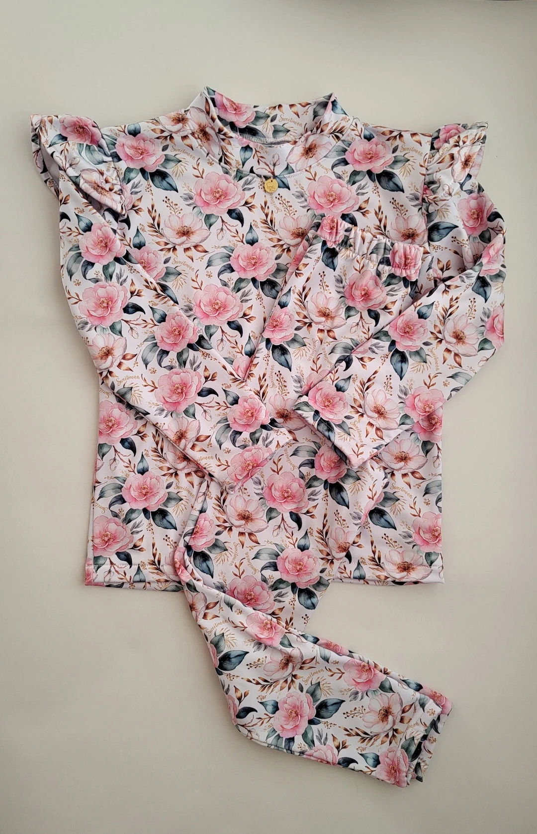 Elaborado en microfibra con Lycra frizada, holgados y cómodos. Este conjuntito será el favorito de tu peque está temporada, incluye leggins y busito media polera con vuelitos en los hombros.