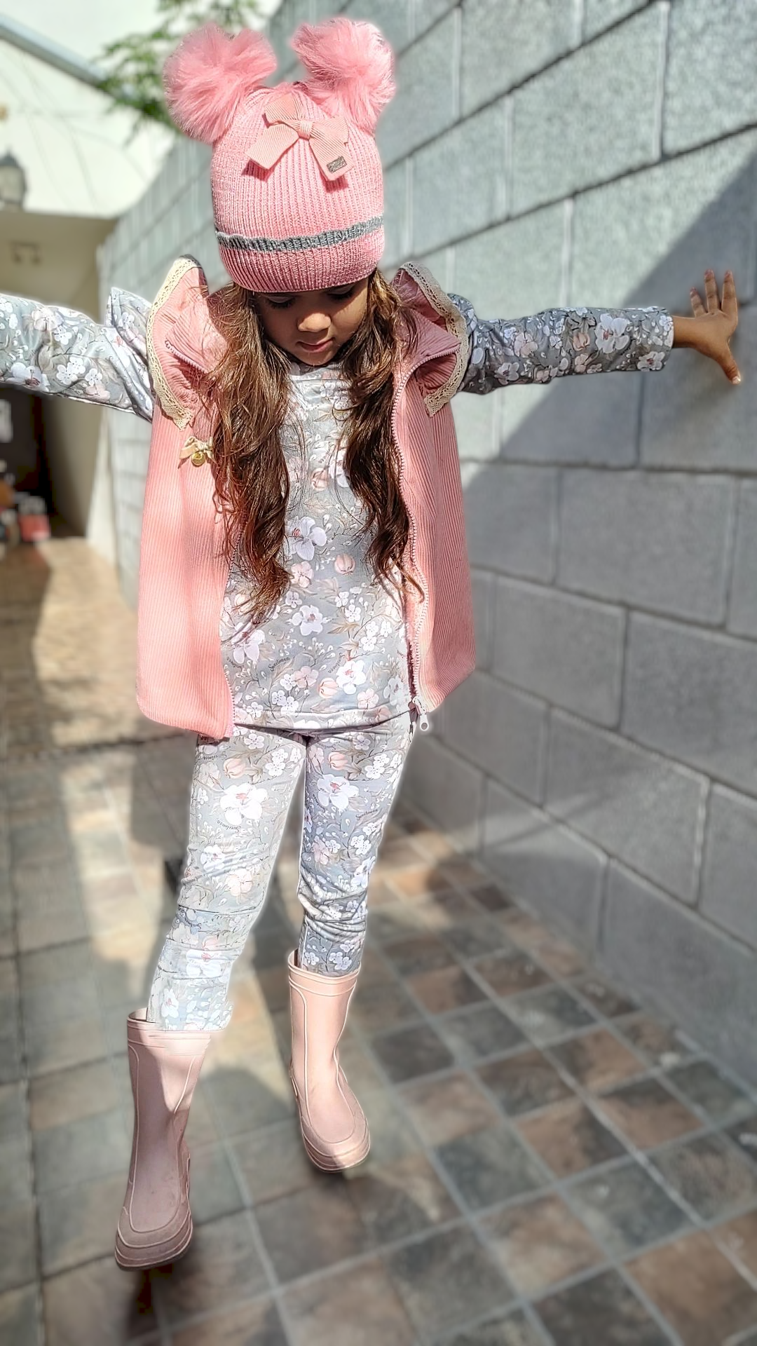 Elaborado en microfibra con Lycra frizada, holgados y cómodos. Este conjuntito será el favorito de tu peque está temporada, incluye leggins y busito media polera con vuelitos en los hombros.