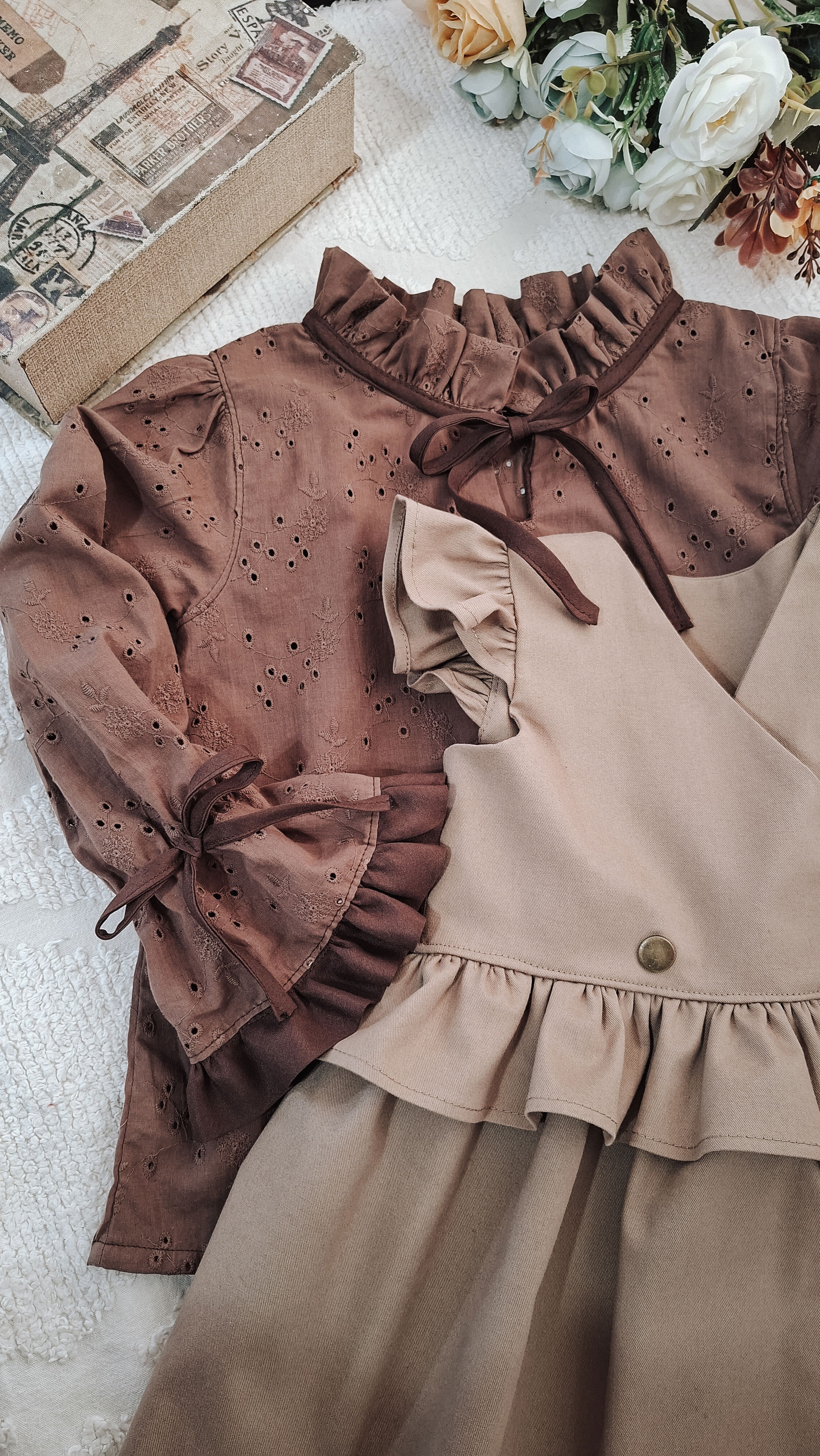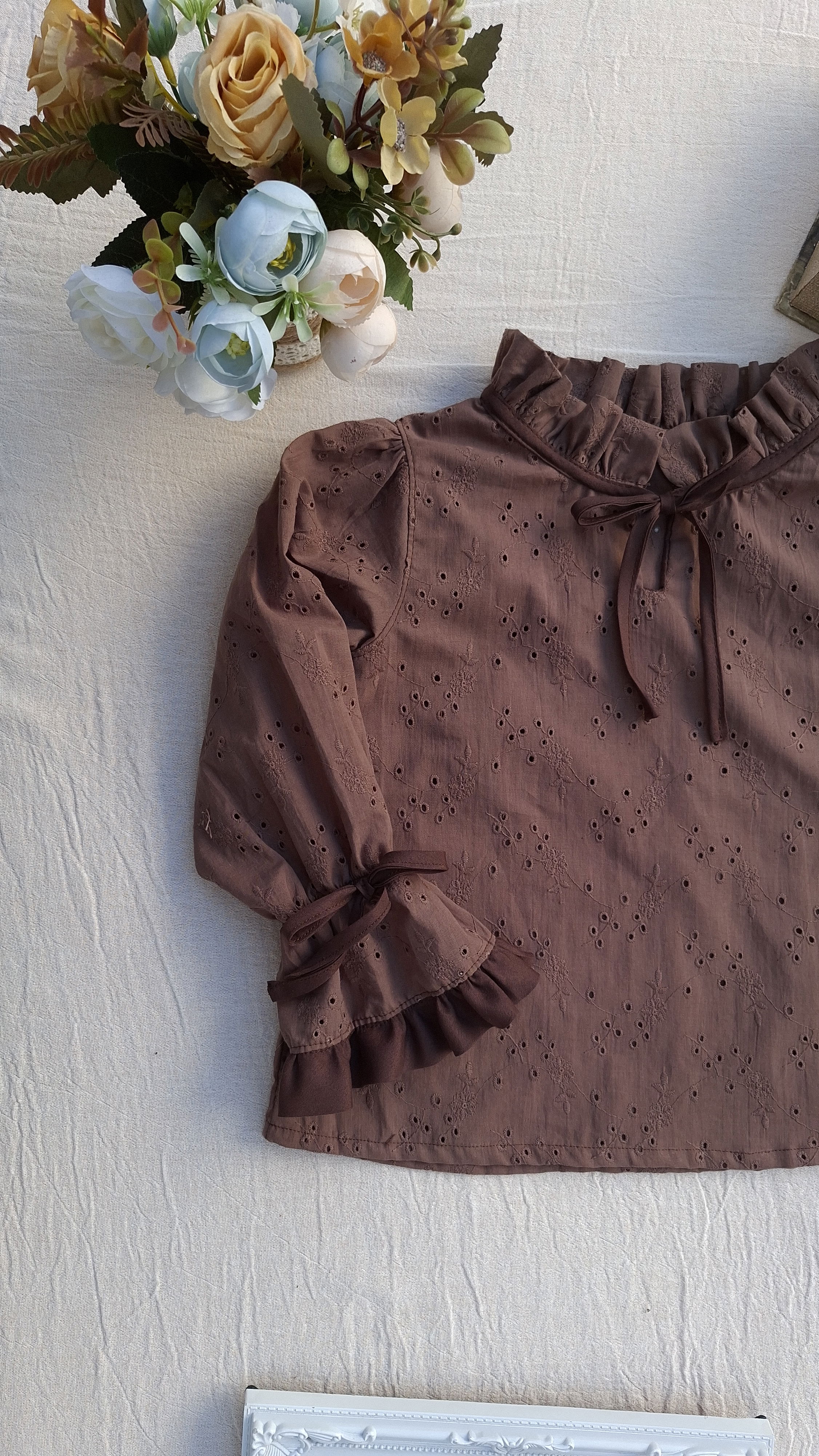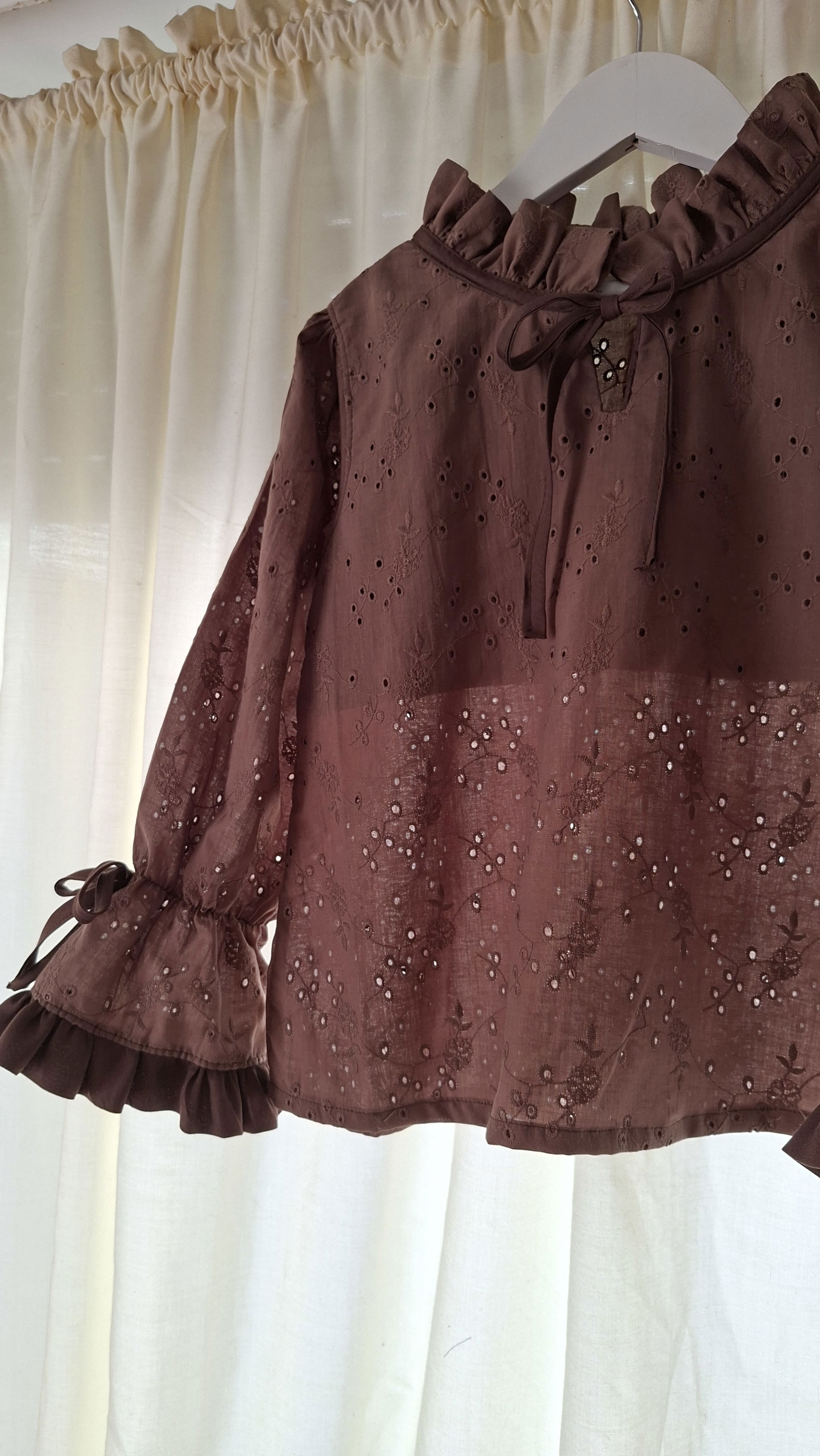 La necesitas, si... si! Elaborada en broderie de algodón color chocolate...
