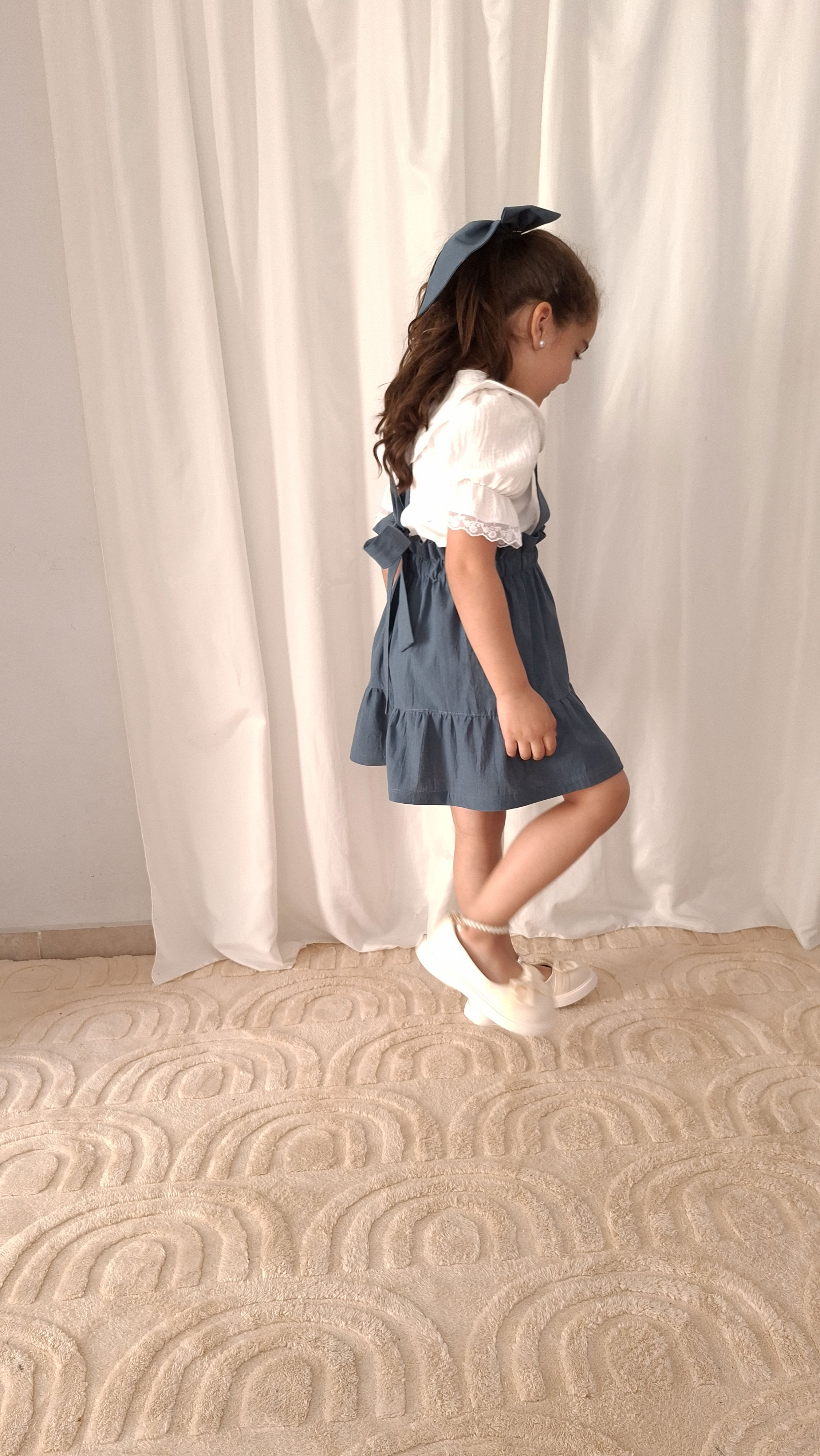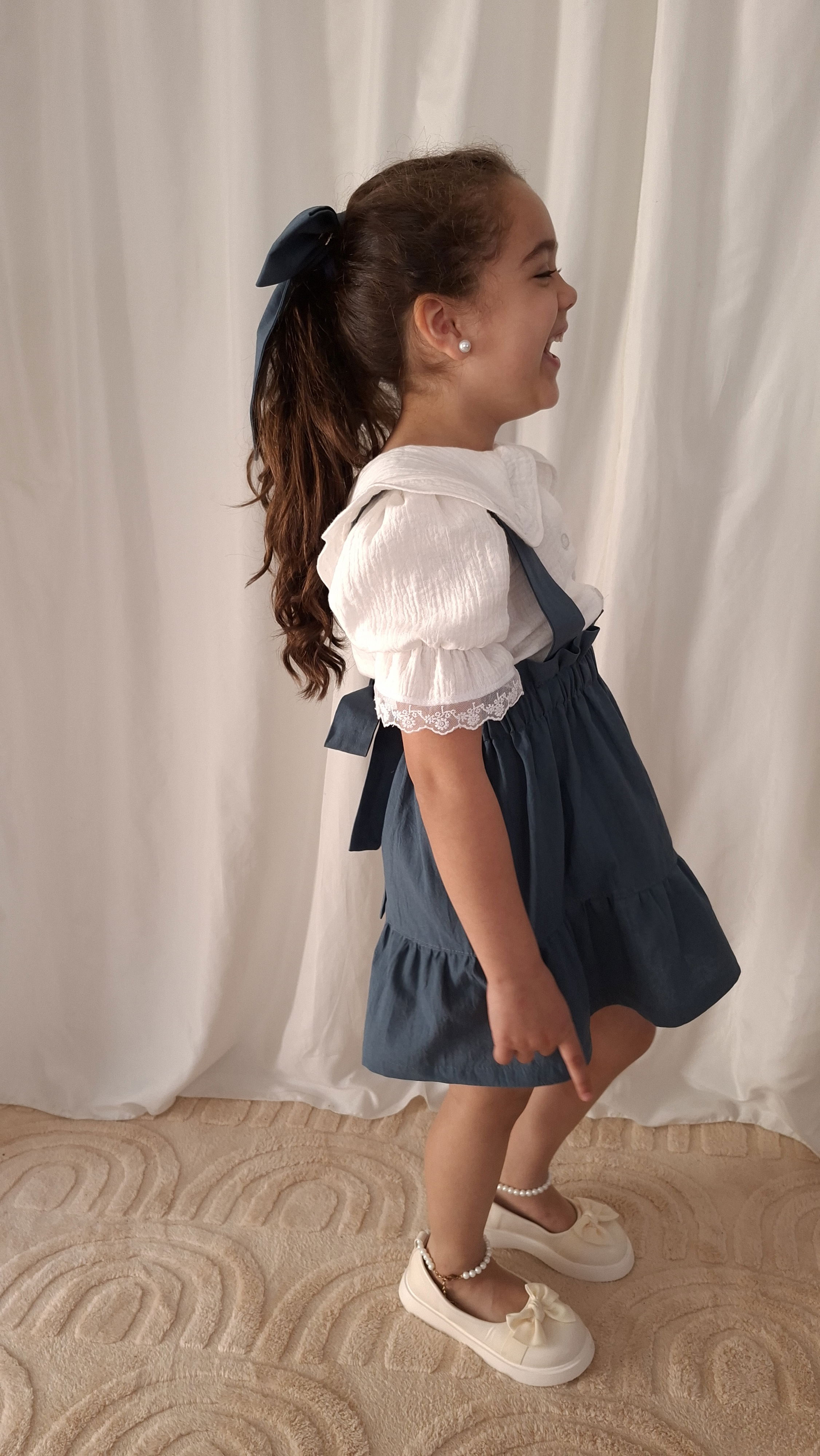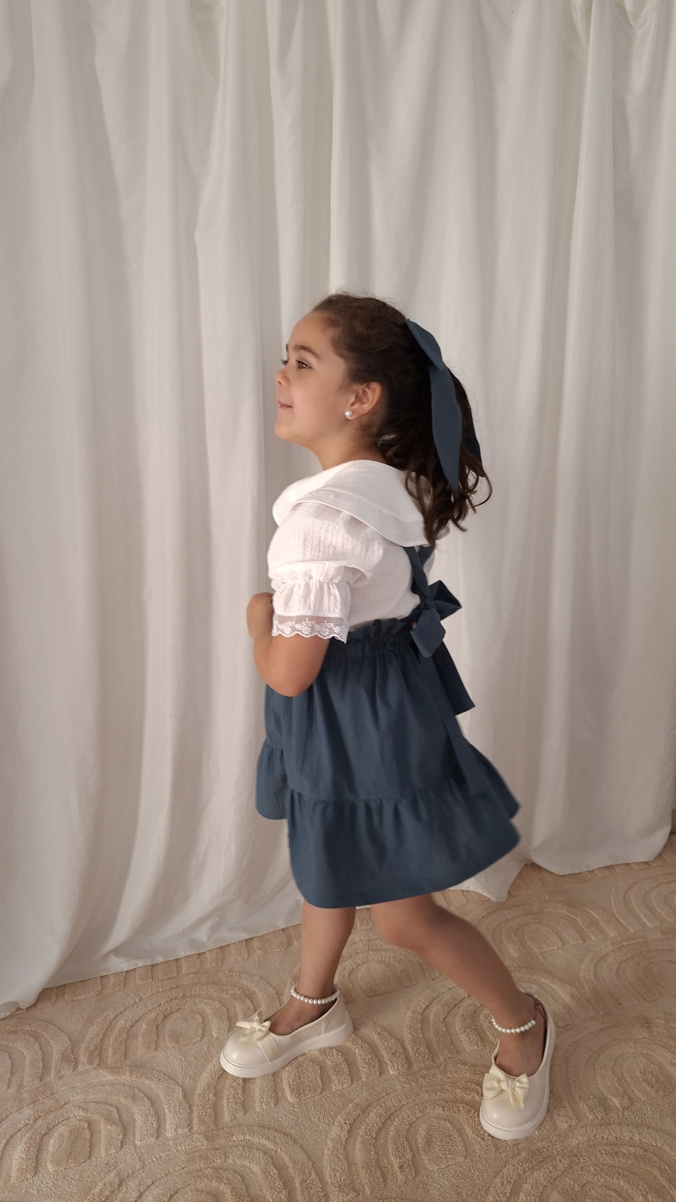 Esta hermosisima camisita está confeccionada en tela baby cotton, con cuello bebe y vuelitos. Manguita bombé con detalles de microtul bordado y botones blancos con brillitos