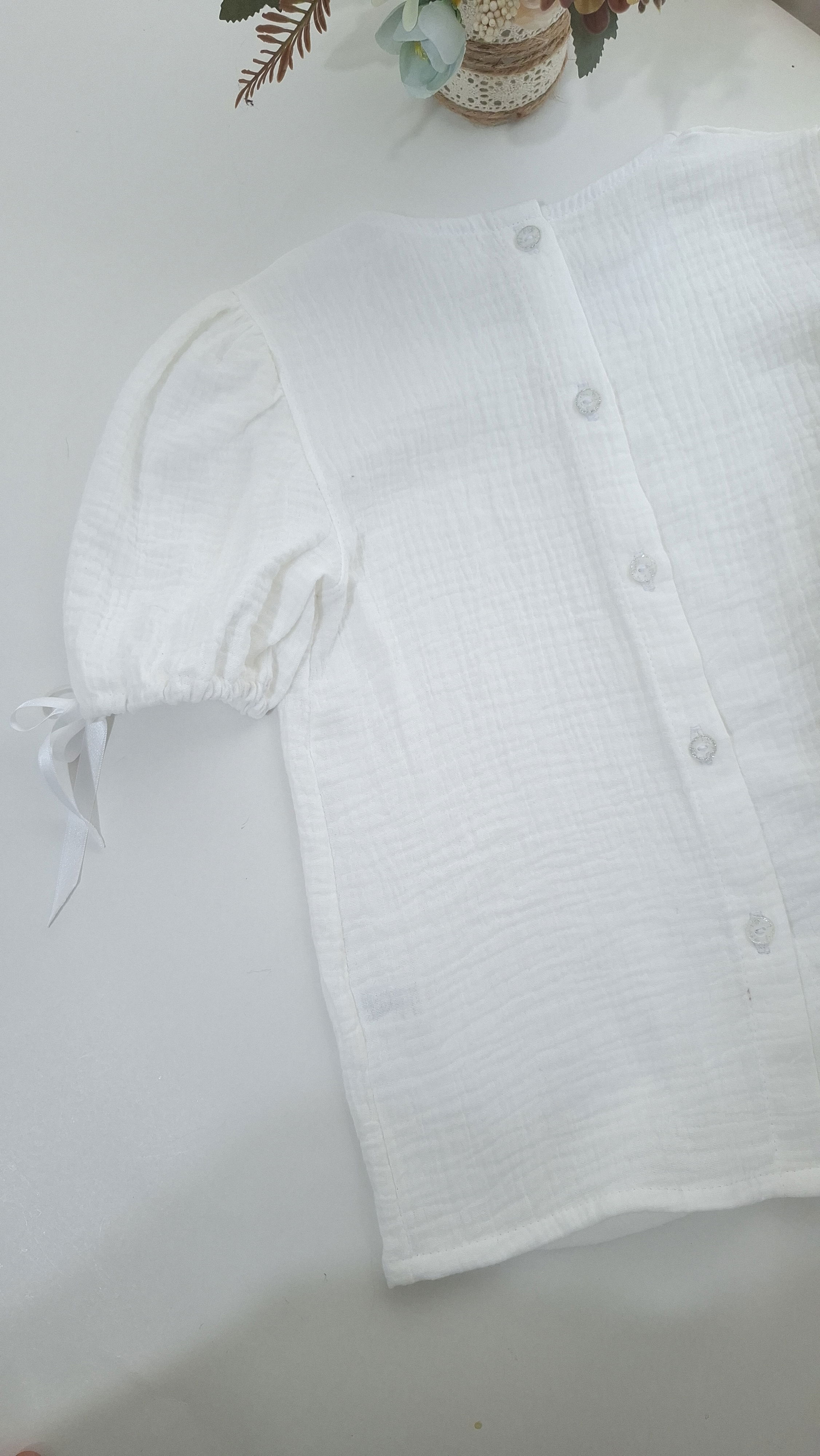 Una basica que va con todo! Camisita de baby cotton con botones en la espalda y manguitas globo